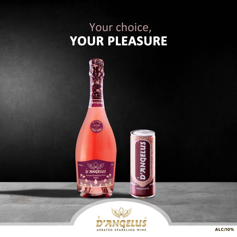D'Angelus Rose Sparkling Wine is a delight that comes in 750ml bottle and 250ml can for your convenience; we call it fun-on-the-go.